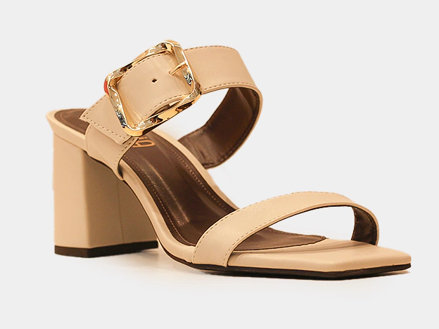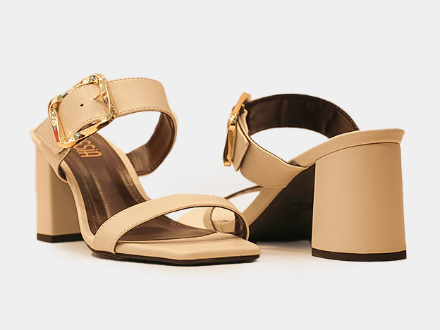 Tamanco bege salto bloco fivelas