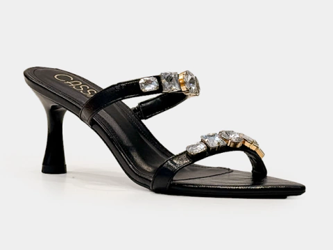Tamanco pedraria salto fino preto